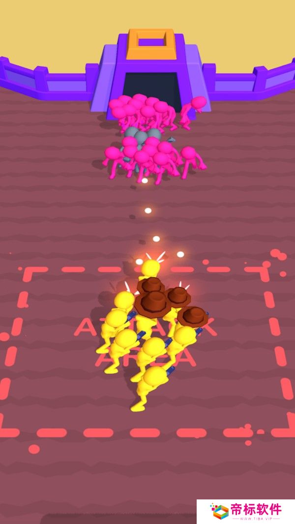 2. 开始冒险:玩家独自奔跑在战场上,不断收集新的战士,同时躲避敌人的攻击。