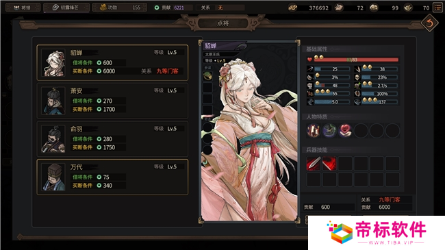 当然,无论怎么说一款挂着“三国”名号的游戏,不可能把所有重心都放在地方**斗争和程序化NPC上,“三国”这一段历史最核心的人物“英雄”也有在游戏中出现。为了满足不少三国策略游戏玩家的武将收集癖好,《猛将三国》设计了160+拥有独立立绘、建模、技能与专属装备的武将。他们有的以白身散落各地,有的则已投身名门大族,玩家需要根据自己的喜好以及战略规划,来决定是优先收集在野武将还是从他人处挖角。