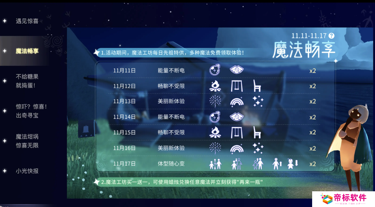 以上就是为大家带来的光遇11.14免费魔法收集攻略,希望对大家有所帮助。