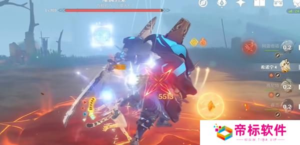 4、切希诺宁开启战技打出火结晶,接一段普攻触发夜兰协同挂水。