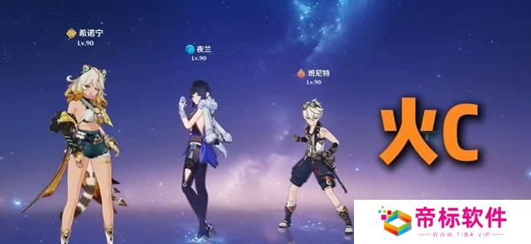 1、增伤为水火双增伤,以希夜班(希诺宁、夜兰、班尼特)组合为例。