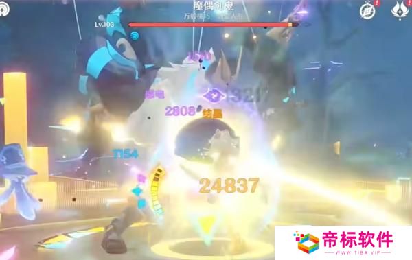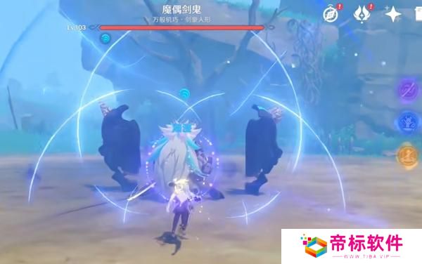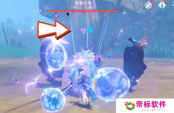2、首先夜兰战技吃球开大挂上强水,班尼特开大上强火,因后手元素不残留,所以怪物头上还是水元素。