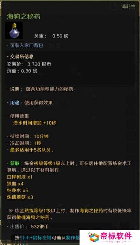 如果能加上暂时提升潜水时间的海狗之秘药就会更完美!