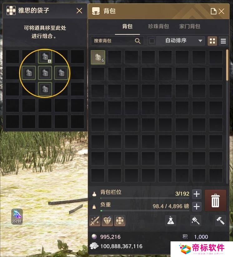 如果要组合在雅思的组合袋内照排列成特定的样子才能组合的道具,必须要先解除自动排列检视功能。